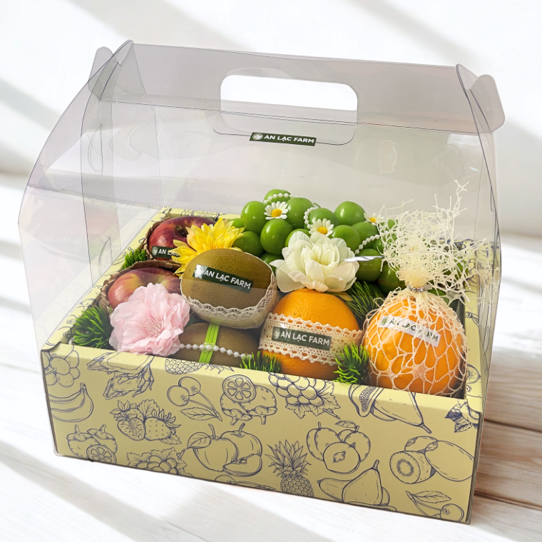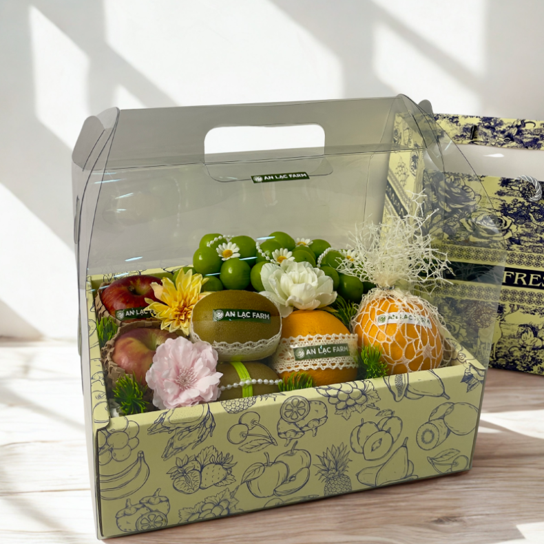 "Rương quả tươi mới" từ An Lạc Farm là một kiệt tác sang trọng, được trình bày trong hộp quà kính cao cấp mang phong cách hiện đại và tinh tế. kết hợp với các loại trái cây nhập khẩu được trang trí tỉ mỉ.Mang đến một rương báu vật tràn đầy sức sống và hương vị, hộp quà này không chỉ là món quà sức khỏe mà còn là biểu tượng của sự tươi mới và thịnh vượng, lý tưởng cho dịp sinh nhật, lễ Tết, hoặc tri ân